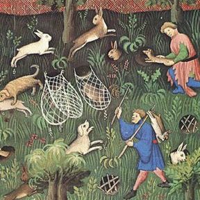 Man versperrte die Hasenbauten, legte Fangnetze aus und trieb die Hasen in genau diese.