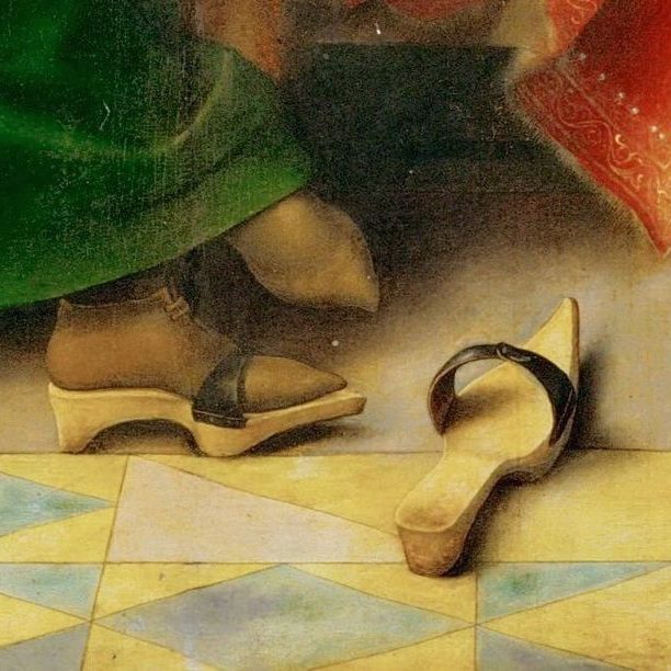 Detail von Trippen aus dem Gemälde: Arnolfini Hochzeit, Jan van Eyck, 1434